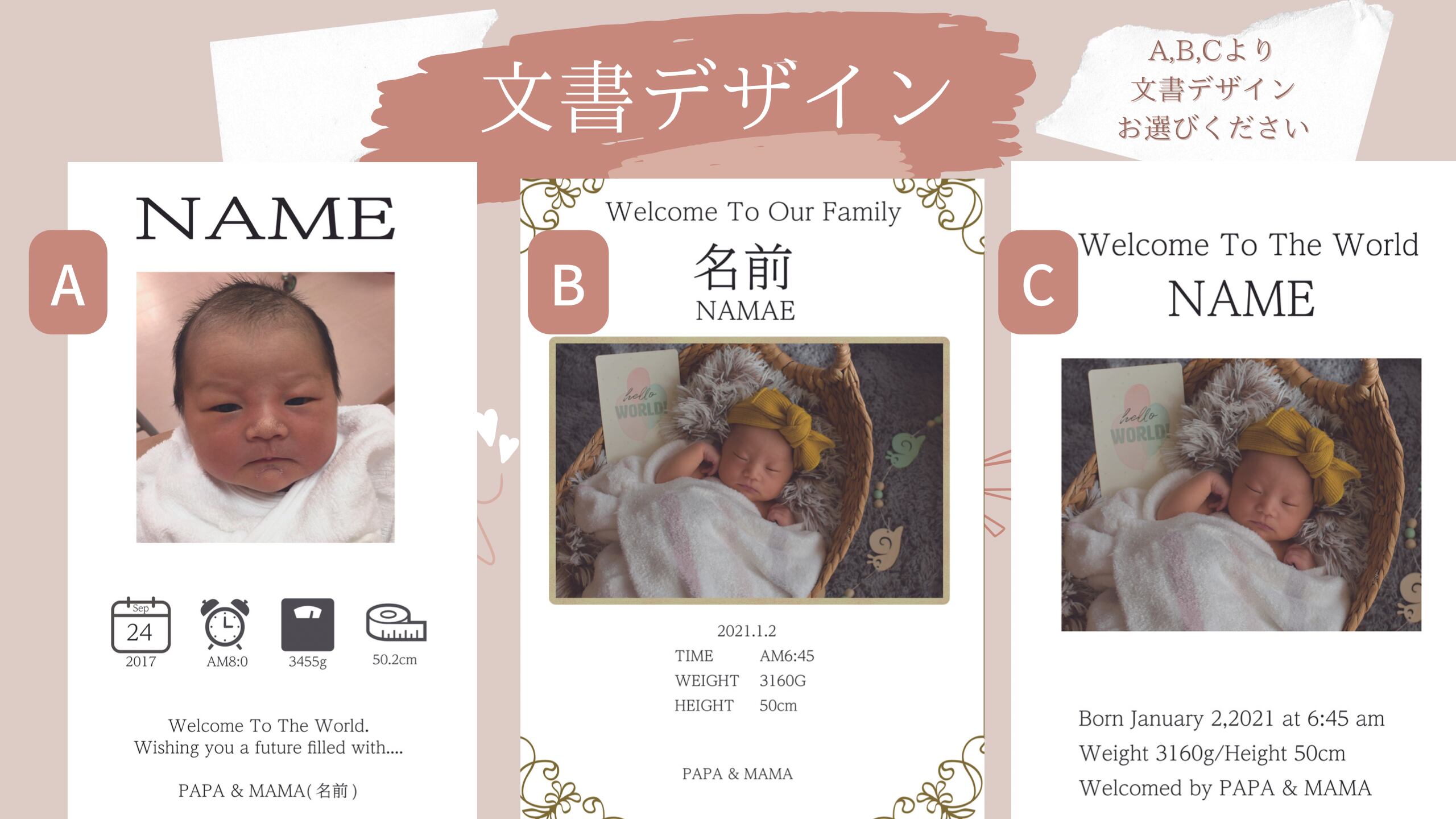 ①Welcome to the world (name)